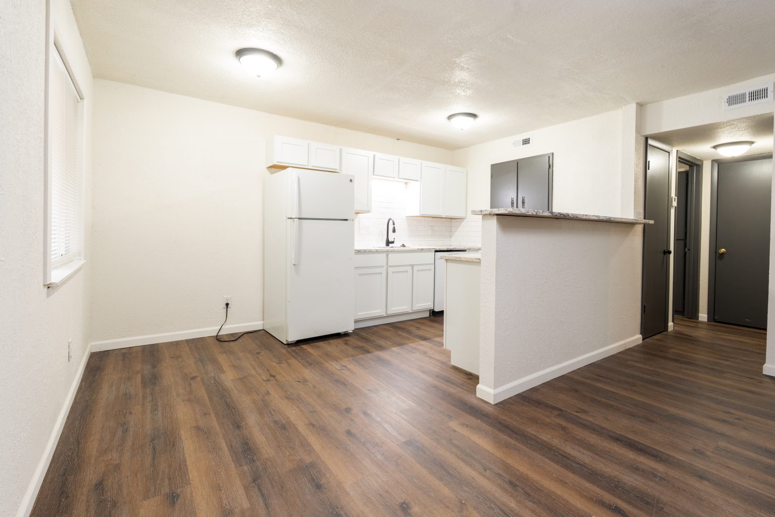 Freshly updated one-bedroom with new appliances, granite countertops, and flooring throughout! This four-plex is located near Kellogg and Seneca.